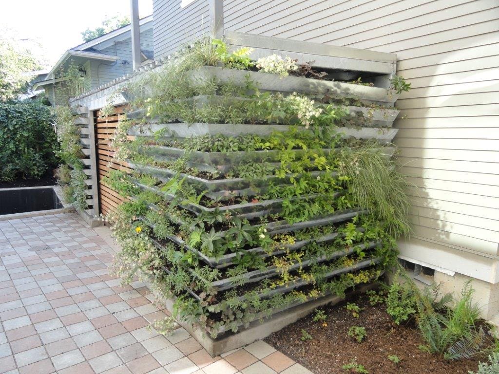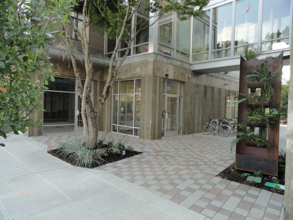 There is also a unique living wall that surrounds the trash enclosure to provide screening from view and softening of the spaces.