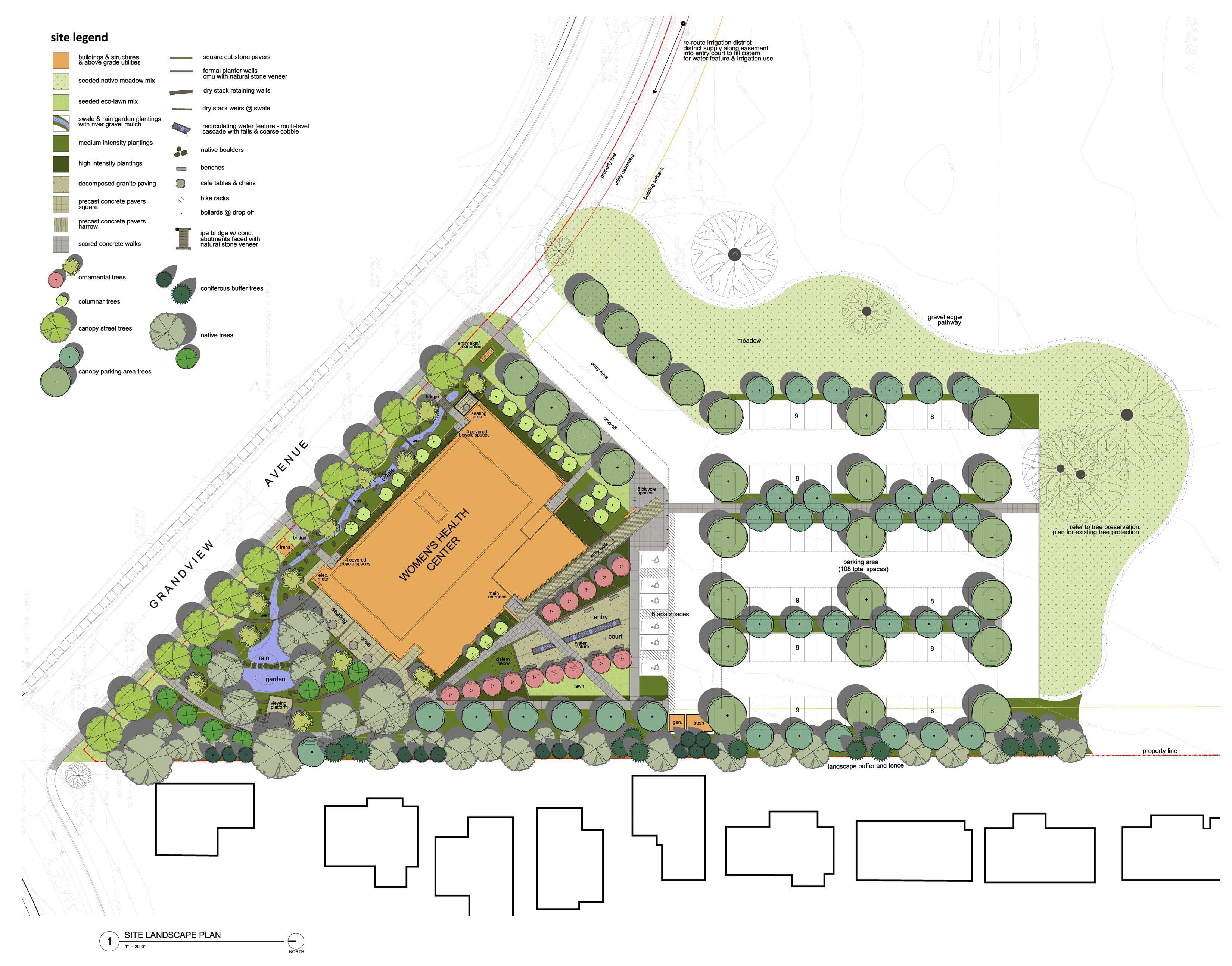One aspect of our site design tool-kit here at Herrera (including site civil and landscape architecture) is demonstrated with LEED projects of a variety of sizes and scales. Our knowledge and expertise of stormwater, open space, habitat, water conserving irrigation, and water reuse. Our LEED professionals have experience with many projects using LEED for New Construction, Existing Buildings, Homes, Neighborhood Development, and Healthcare and projects have achieved from Certified to Platinum, the highest rating. A recent certification of the Women’s Center of Southern Oregon in Grants Pass, Oregon (LEED NC – Silver) and the Move the House Apartments in Portland, Oregon (LEED Homes – Platinum) provides an opportunity to show how ecological site design at different densities and scales aids in achieving higher ratings, and more importantly, more sustainable sites.